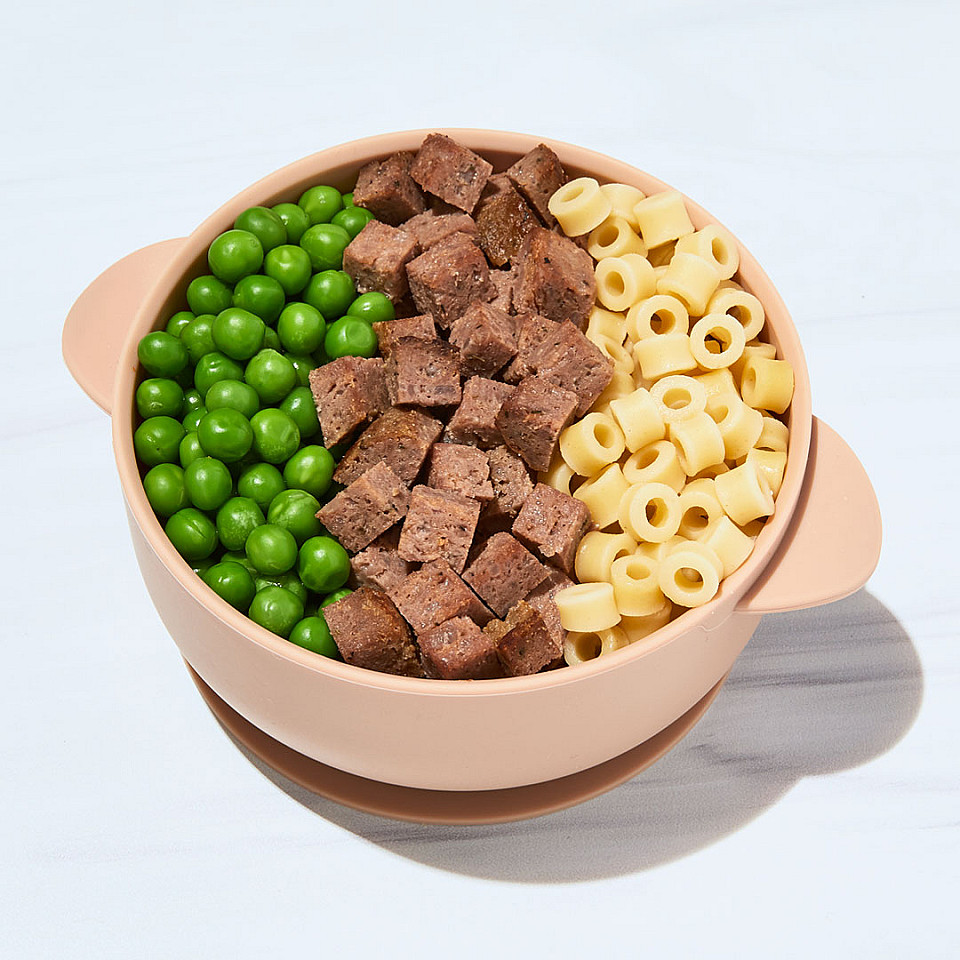 There’s nothing better than the perfect meatball and pasta pairing! We layer juicy bites of beef meatballs, mini ditalini pasta and sweet and plump English peas for a simple yet satisfying mix of baby-friendly flavors.